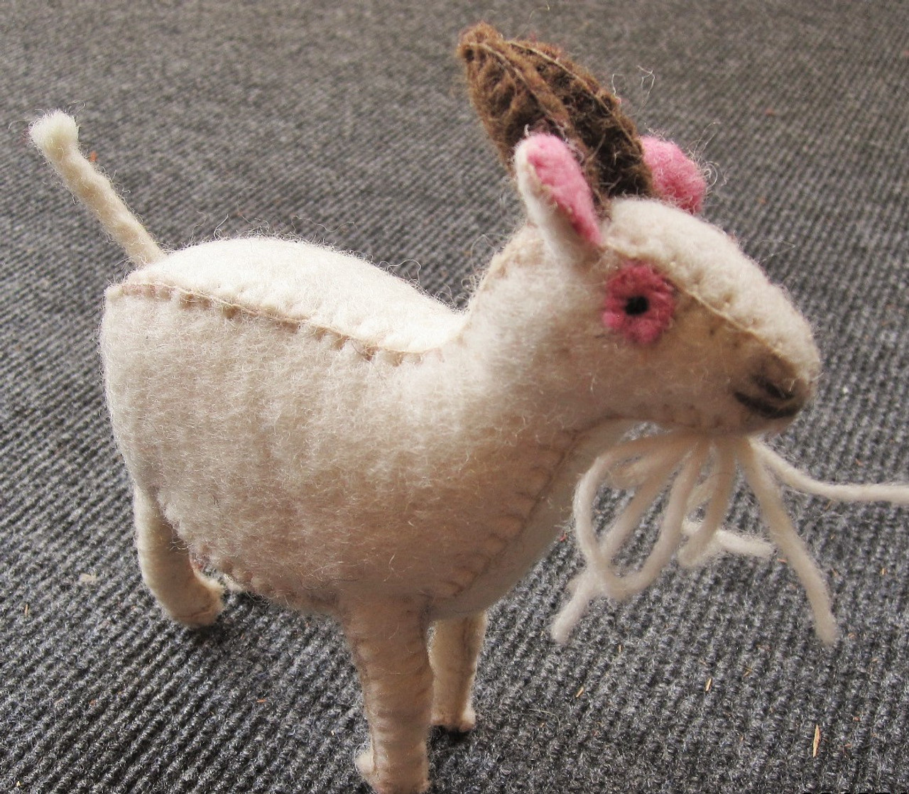 Drie kleine geitjes met de hand gemaakt van wolvilt.