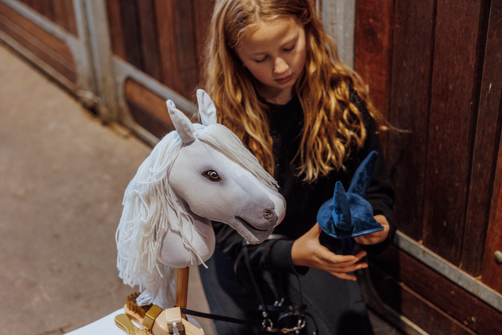 Kleed je hobbypaard aan met een marineblauwe deken en een knus mutsje, en geniet van hoe ze hem zowel warm als stijlvol houden, of hij nu buiten in de tuin staat of veilig opgeborgen in zijn stal of hobbybox.