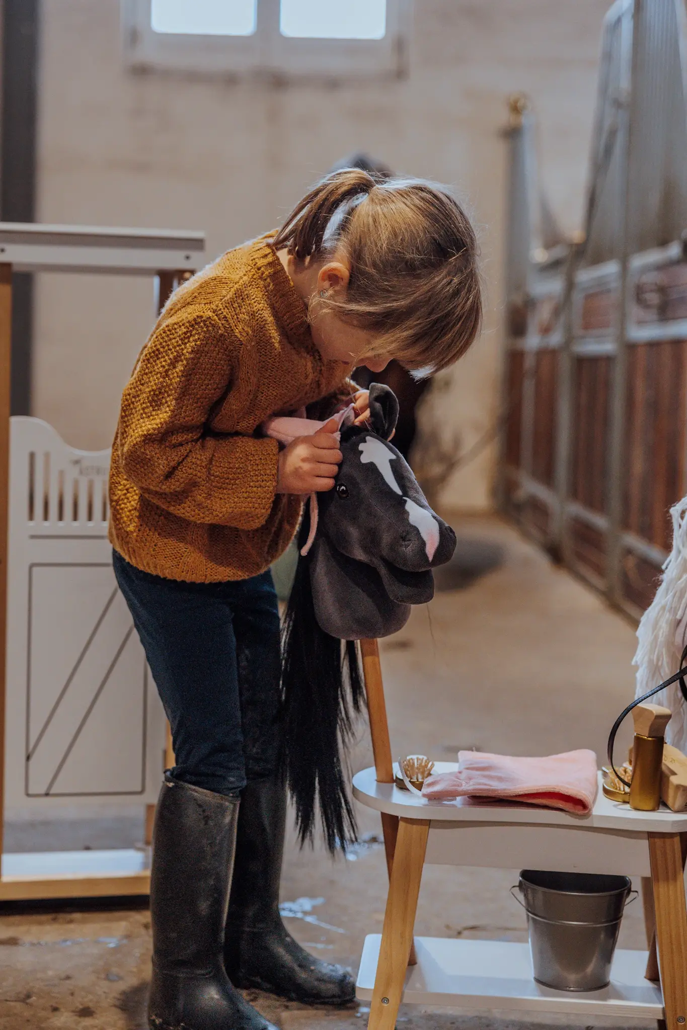 Kleed je hobbypaard aan met een marineblauwe deken en een knus mutsje, en geniet van hoe ze hem zowel warm als stijlvol houden, of hij nu buiten in de tuin staat of veilig opgeborgen in zijn stal of hobbybox.