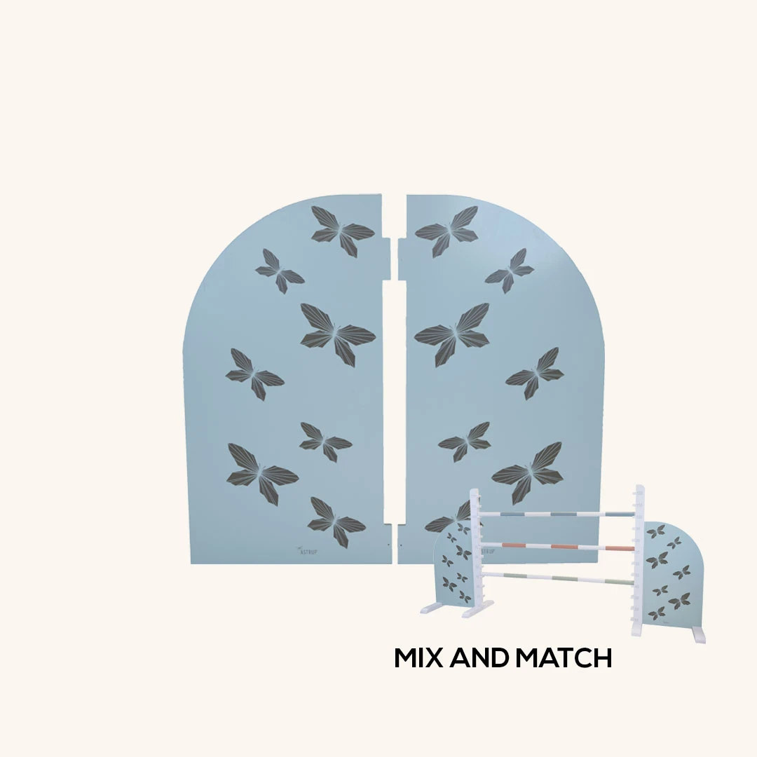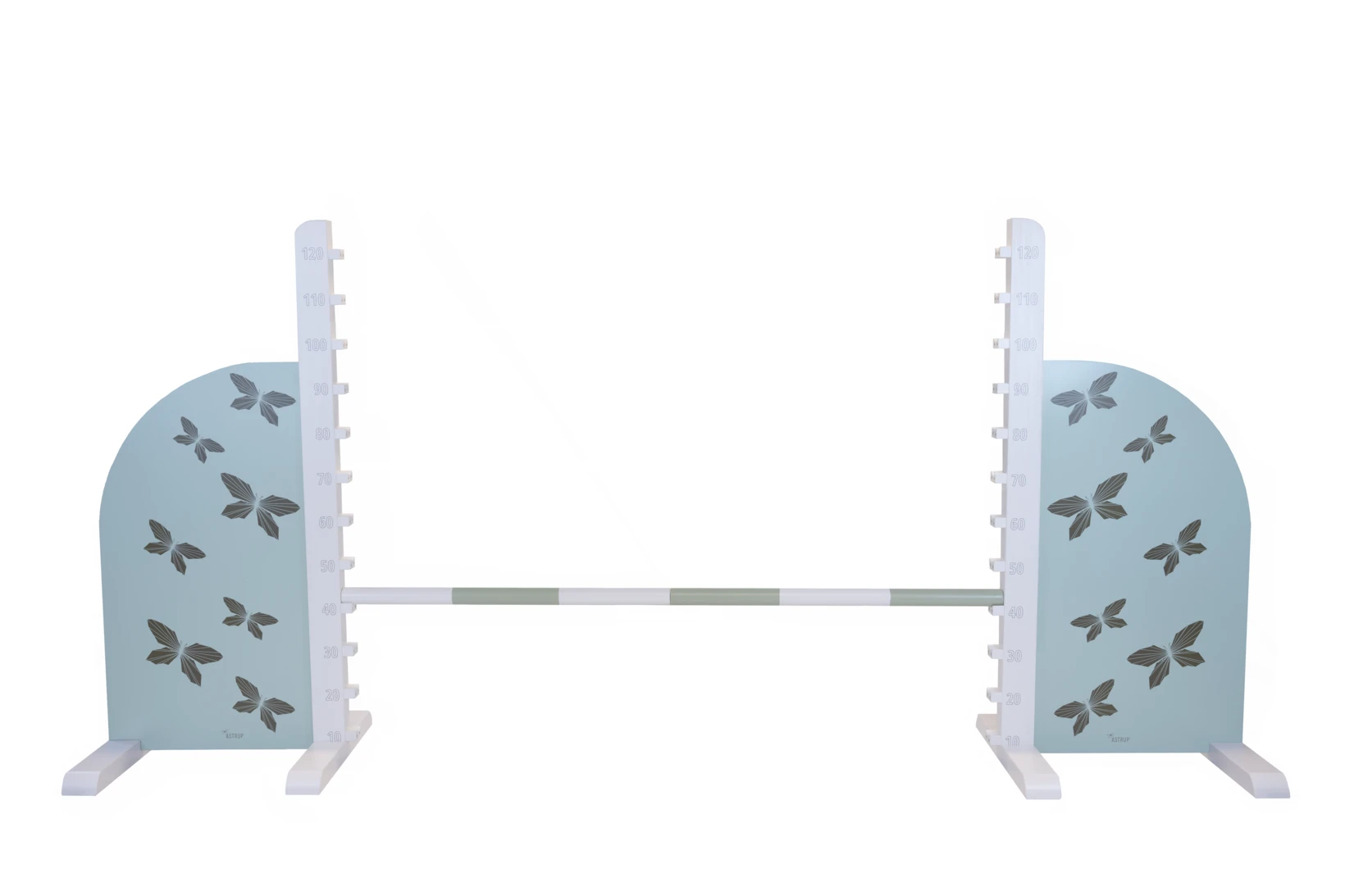 Creëer de perfecte hindernis voor hobbypaarden met deze set vleugels met prachtige gouden vlinders, ontworpen om gemakkelijk te combineren met de bijpassende standaards. Deze vleugels vormen de ideale aanvulling voor een complete en verstelbare showhindernis, waardoor jonge ruiters en hobbypaarden een verscheidenheid aan spannende uitdagingen kunnen verkennen.