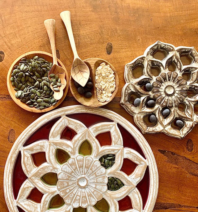 Het Mandala Bloemenbord heeft Lucite in de openingen, waardoor er een bodem is en er niets doorheen kan vallen. De borden zijn niet geschikt om mee in een nat gebied te spelen, maar kunnen wel op een lichttafel of buiten in de natuur gebruikt worden. Zoek kleine schatten om op het bord te leggen en geniet van de prachtige mandala die ontstaat. Deze grote bloemenborden hebben gekleurde Lucite en zien er fantastisch uit tegen een raam als ze niet gebruikt worden om mee te spelen. Ook erg mooi op een lichttafel.