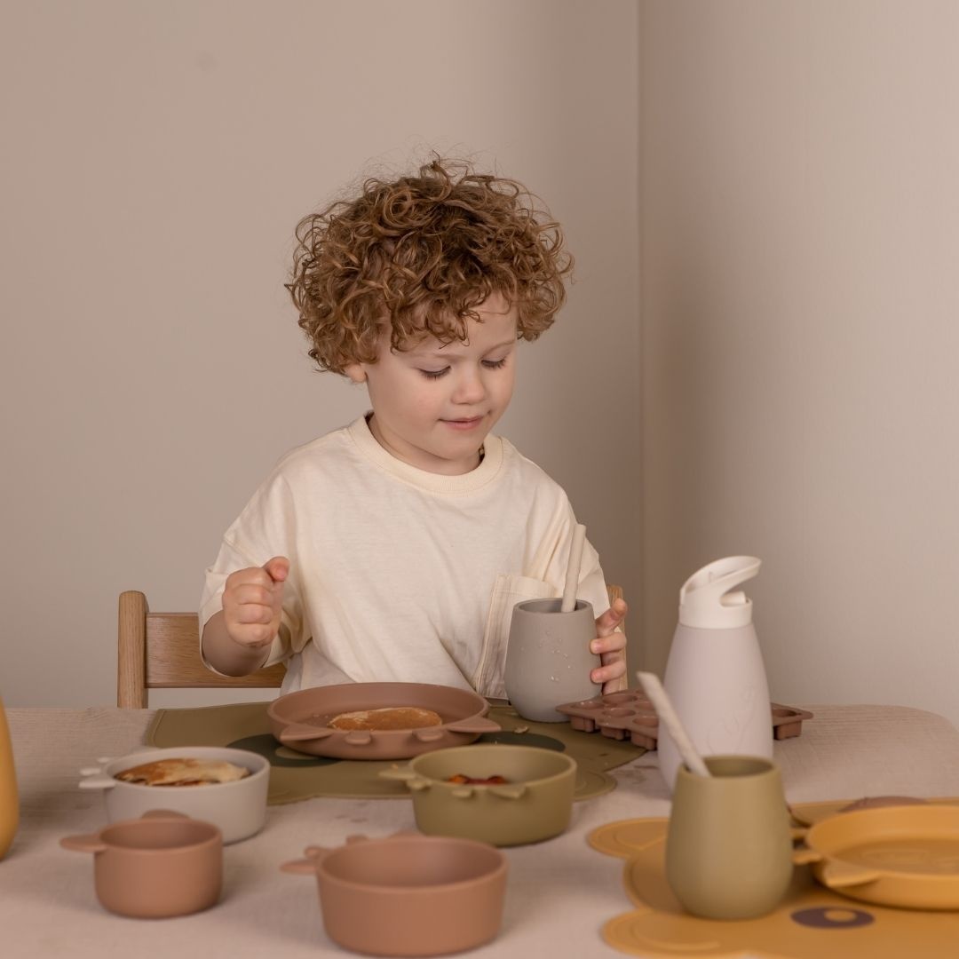 Pax drinking bottle with cute motive of a circus elephant. The bottle is made of 100% LFGB silicone, which is free of harmful chemicals and approved for food. The lid is made of plastic without phthalates, and fits snugly to the bottle.
