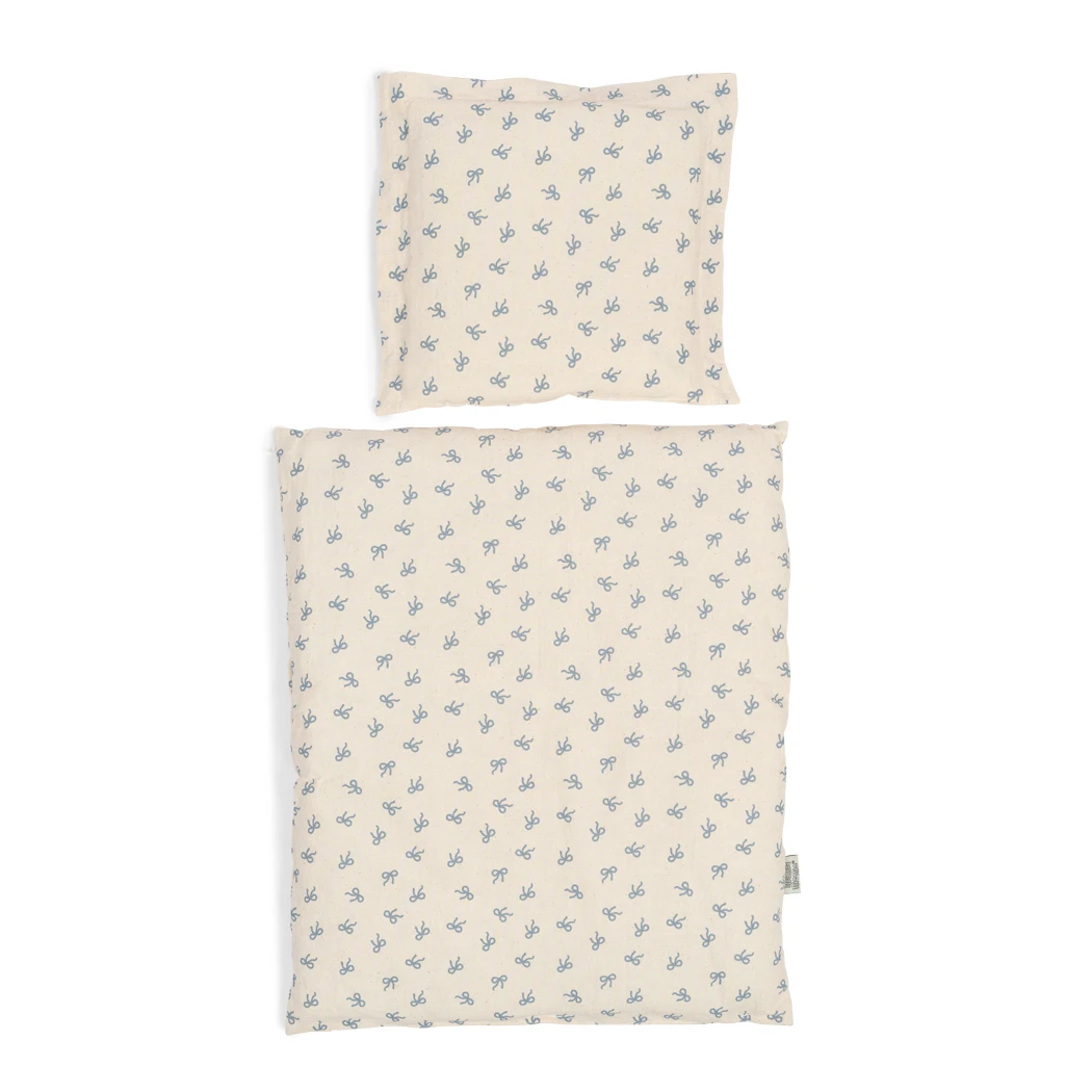 Voeg een zoete en gezellige toets toe aan de slaapkamer van je kind met deze prachtige beddengoed set voor de pop in een delicate lichtblauwe tint met een schattig strikdetail. Gemaakt van zacht en comfortabel katoen, zorgt dit beddengoed voor een goede poppen nachtrust.