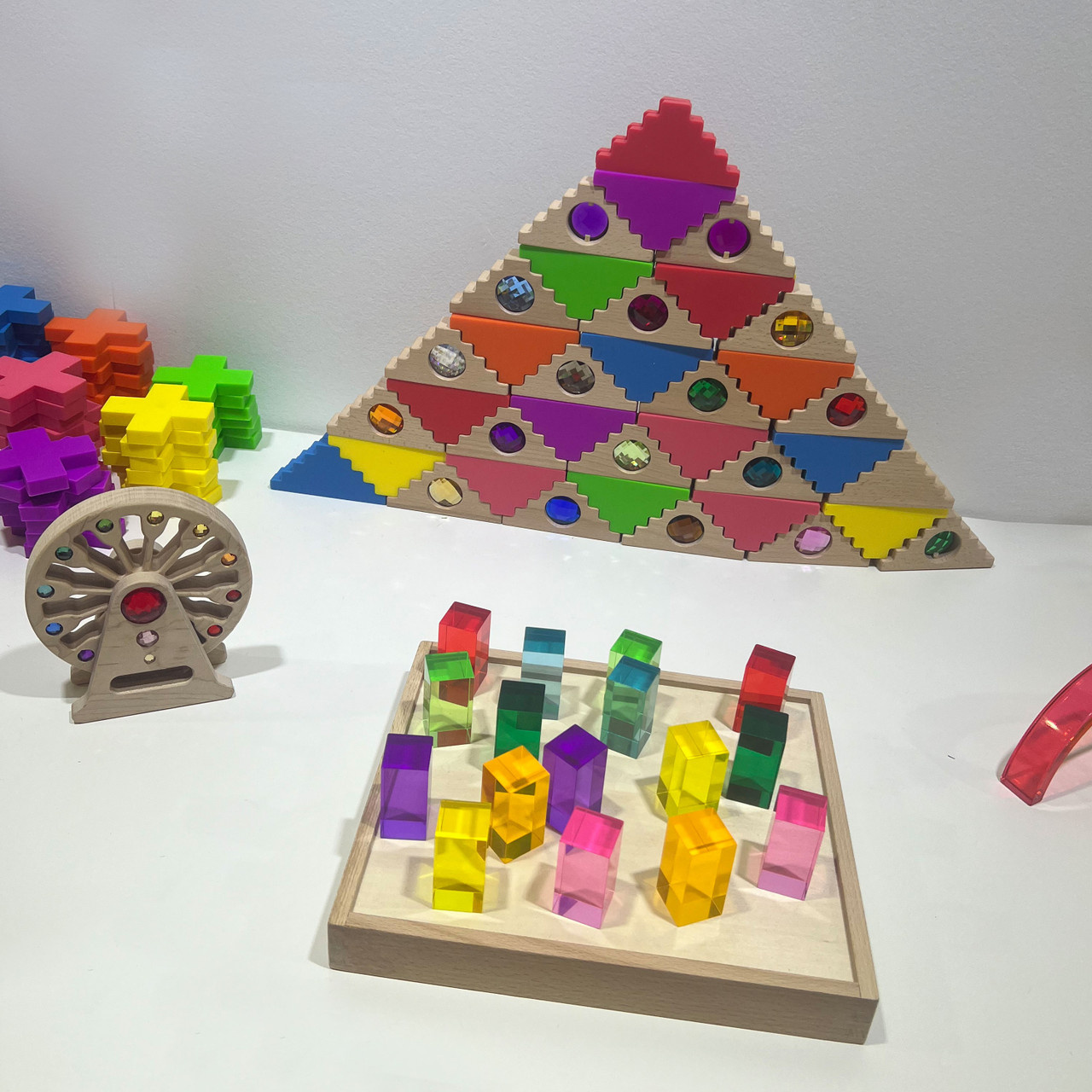 Ik vind dit een mindful speelgoed voor alle leeftijden; spelen met de kleuren, vooral in combinatie met de houten blokken, is puur plezier.