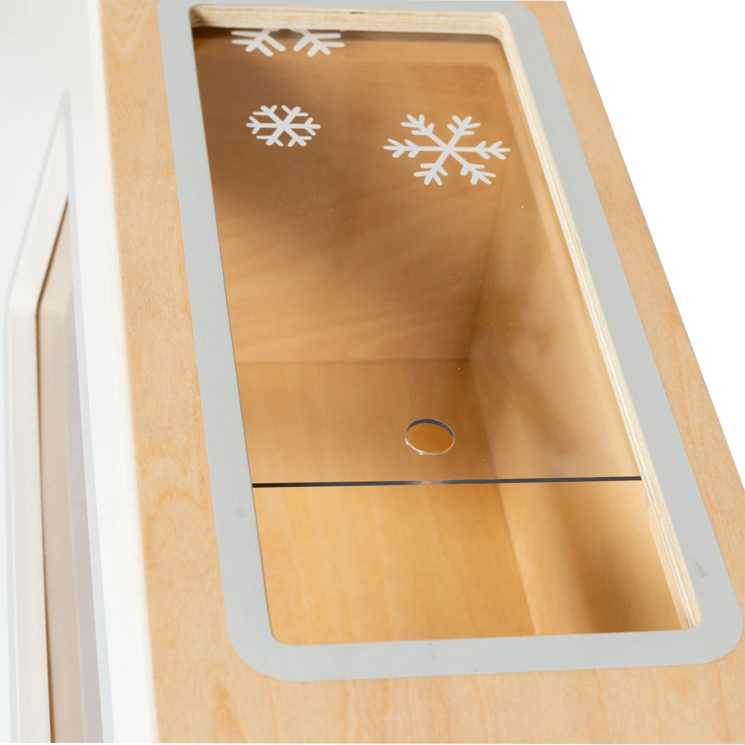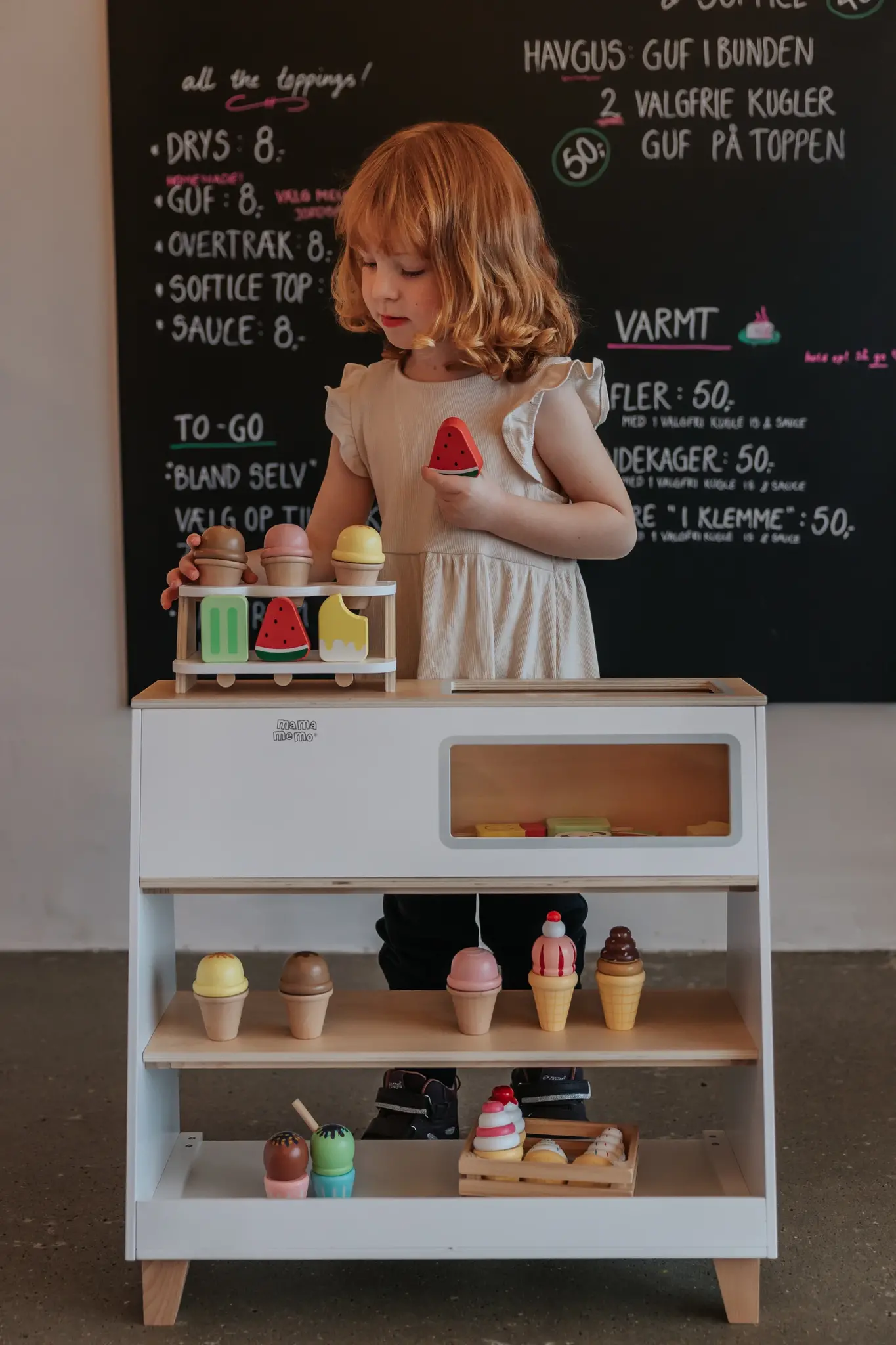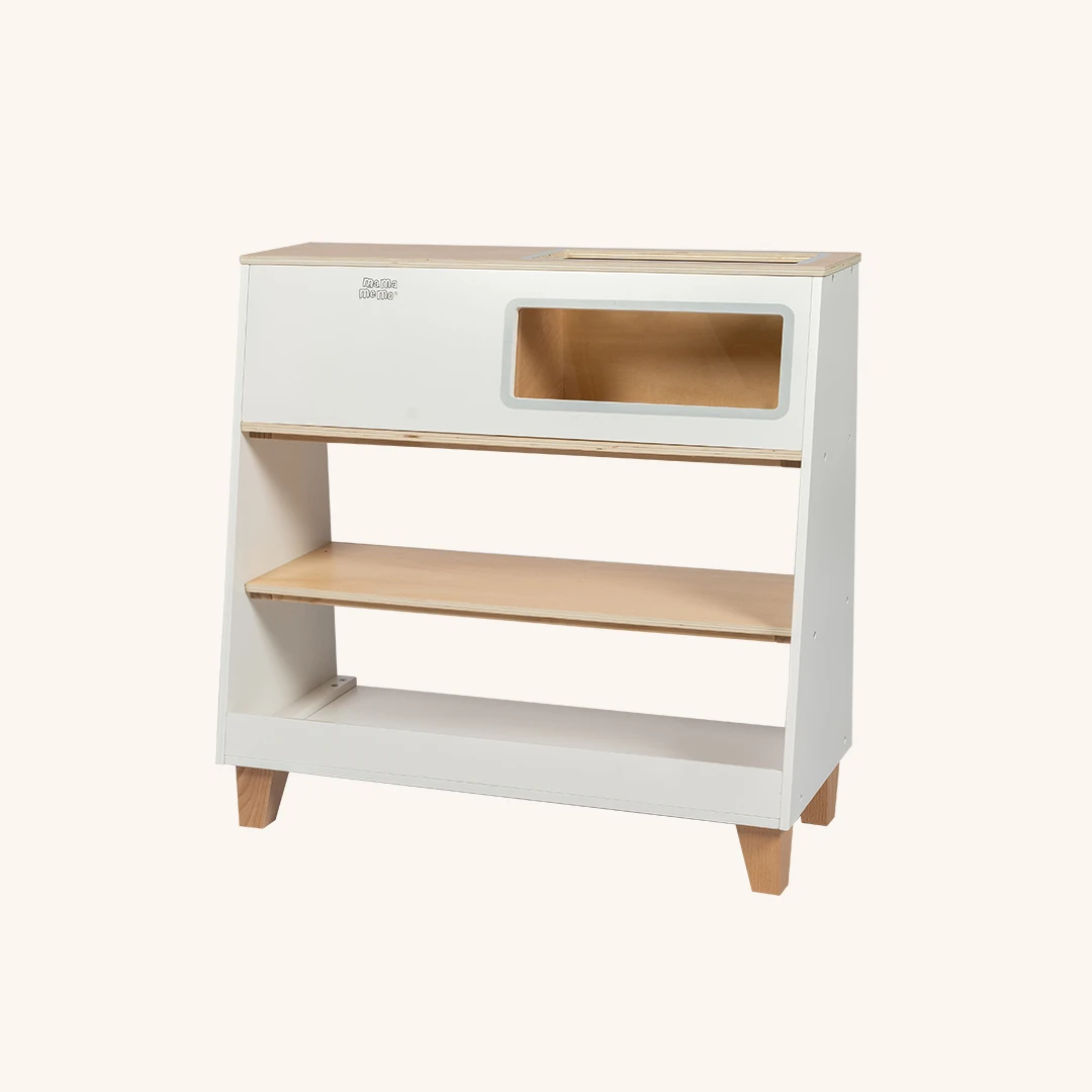 De ingebouwde vriezer is perfect voor het bewaren van al het nep-ijs dat de kleintjes maar kunnen bedenken. Met een speciale houder voor ijsjes kunnen kinderen hun bevroren lekkernijen stijlvol ordenen en tentoonstellen. Of ze nu een nep-ijssalon runnen, vrienden bedienen of hun eigen zoete recepten bedenken, deze winkel biedt eindeloze mogelijkheden voor creatief rollenspel. Gemaakt van hoogwaardig, duurzaam hout, is deze winkel ontworpen om actief spelen te weerstaan, maar behoudt hij zijn mooie uiterlijk.