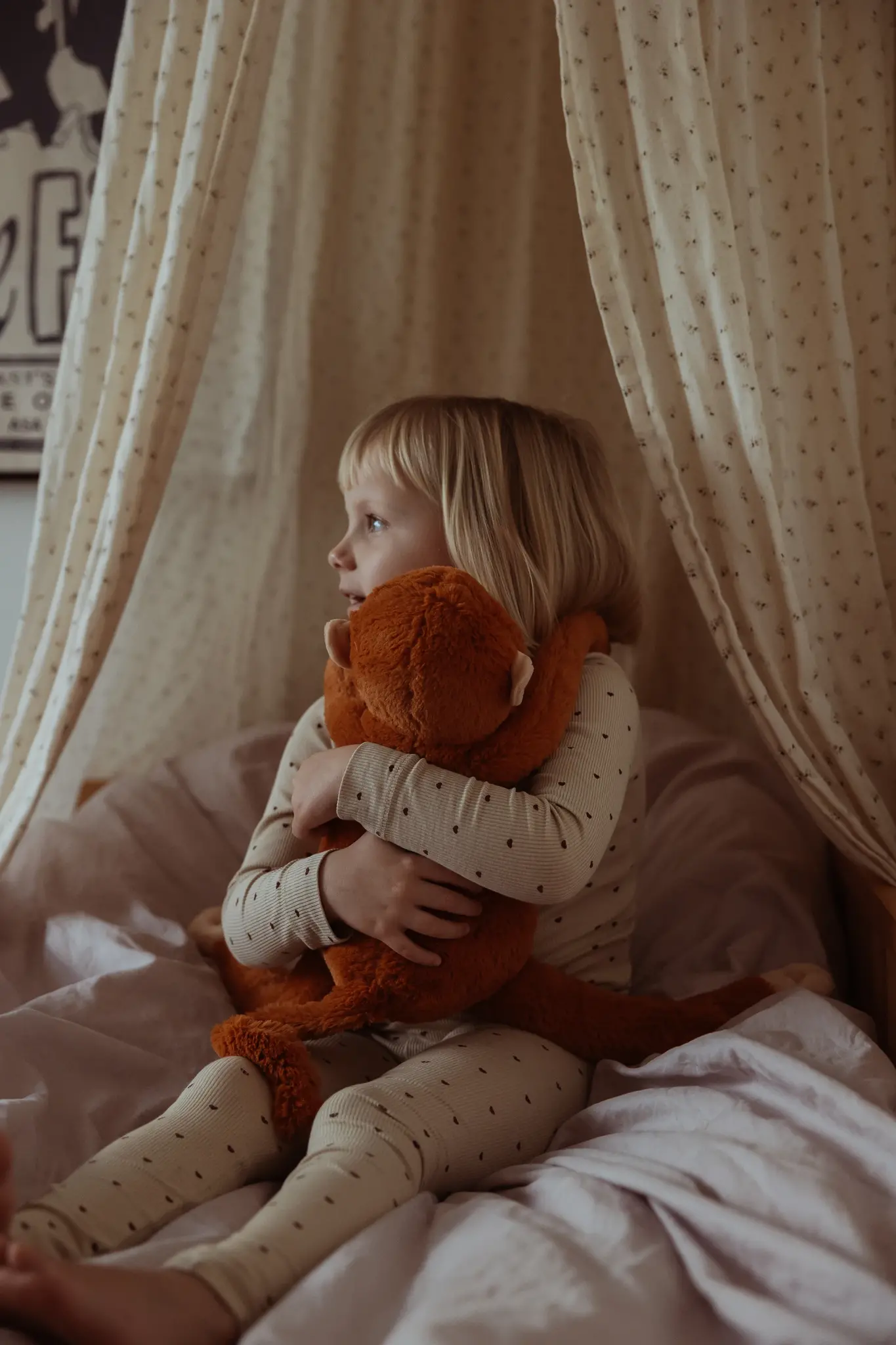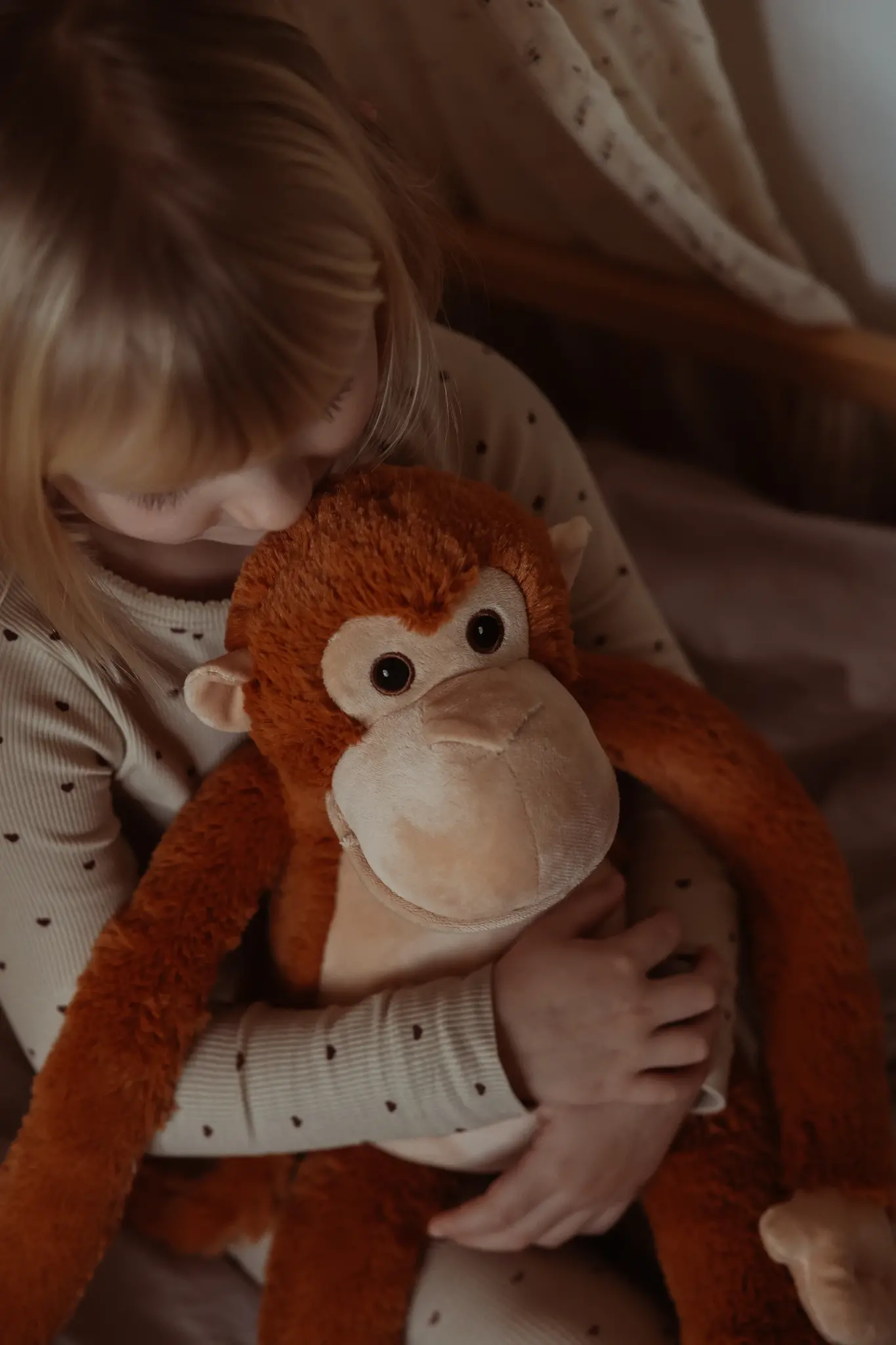 Met zijn levensechte uitdrukking, in warme rode en zandkleurige tinten, de zachtste vacht en een vriendelijke, verzorgende blik, biedt deze verzwaarde aap zowel kalmerende zorg als oprecht gezelschap. Hij is zorgvuldig ontworpen om rustgevende ondersteuning en geruststelling te bieden, waardoor hij een perfecte metgezel is voor alle kinderen, inclusief kinderen met speciale behoeften zoals sensorische gevoeligheden of angst.